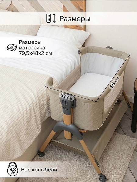 - устанавливается вплотную к кровати родителей и надежно к ней крепится