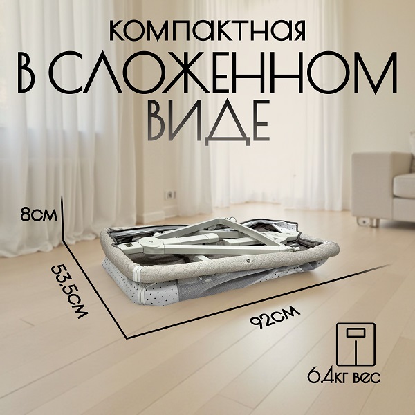 Глубина кроватки: 33,5 см (с матрасиком) / 36,5 см (без матрасика)