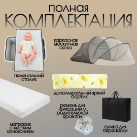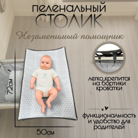 Пеленальный столик крепится прямо на бортики кроватки, что делает процесс ухода за ребёнком удобнее.