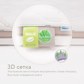 Стеганый чехол из бамбуковой ткани предотвращает появление бактерий. Чехол мягкий, приятный на ощупь, очень прочный и долговечный. Специальная 3D-сетка по периметру создает дополнительную вентиляцию. Высокая гигроскопичность и хорошая воздухопроницаемость материала обеспечат малышу максимум комфорта во время сна. Чехол съемный, на молнии по периметру, так его очень просто снимать для стирки и надевать обратно. Также для удобства слои матраса скреплены между собой. Важно: слои соединены специальным экологичным составом Simalfa (производство Швейцария). Состав на водной основе, без запаха, безопасен для ребенка и имеет сертификат качества.