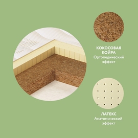 Одна сторона предназначена для поддержки позвоночника новорожденного. Здесь мы использовали увеличенный слой натуральной кокосовой койры (60 мм). Сторона обладает максимальными ортопедическими свойствами (жесткость 5 из 5). Упругие натуральные волокна прочные и долговечные, они остаются как новые весь срок службы матраса. Кроме того, кокосовая койра, скрепленная натуральным латексом, совершенно безопасна для детей (подтверждено исследованиями качества).