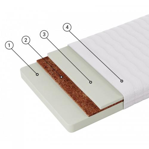 - Латексированная кокосовая койра (1см) Кокосовая койра - 100% натуральный материал с уникальными свойствами. Койра, скрепленная натуральным латексом, дает объемную упругую воздухопроницаемую структуру. Такой материал используется в моделях, предназначенных для любителей более жесткого и упругого спального места. Естественные вентиляционные качества, эластичность, прочность, упругость, гигиеничность и антиаллергенность, наряду с очень долгим сроком службы, делают этот материал идеальным для наполнения матраса.