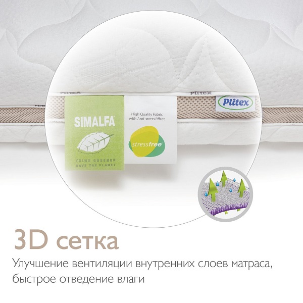 - Чехол StressFree — стеганый трикотажный чехол с поверхностью из 100% натурального хлопка. Материал обладает антистатическими свойствами, то есть устраняет проблему статического электричества, даже если ребенок ворочается во сне.