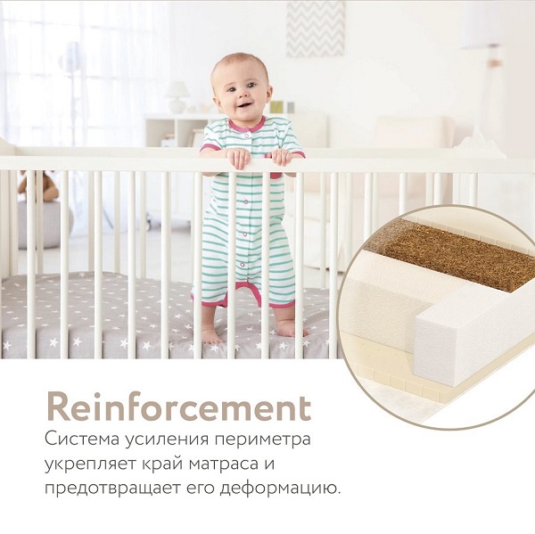 Основная сторона предназначена для повседневного сна, она умеренной жесткости (условная жесткость 3 из 5), поддерживает позвоночник в правильном положении и обеспечивает точечное распределение нагрузки тела таким образом, чтобы во сне мышцы ребенка расслаблялись и ему спалось как можно комфортнее.