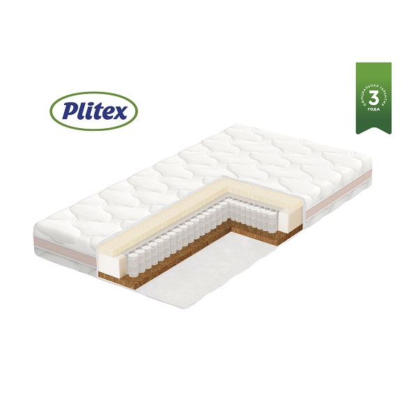 - Блок независимых пружин повышенной упругости. Особенность независимых пружин в том, что каждая находится в отдельном чехле. Из-за этого они реагируют на давление точечно и не воздействуют на соседние пружины. В детском матрасе Plitex Orto Sleep предусмотрено 255 независимых пружин на 1 кв.м. С обеих сторон блока идет слой защитной мембраны - термоскрепленного волокна.
