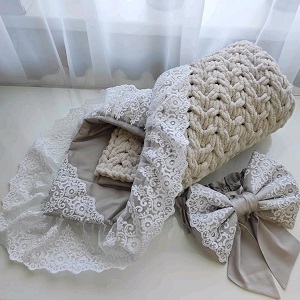 Для холодного времени года достаточно конверта-одеяла. Такая модель одежды для новорожденного украшена кружевом, утеплена синтепоном. Одеяло в дальнейшем пригодится для прогулок на свежем воздухе.