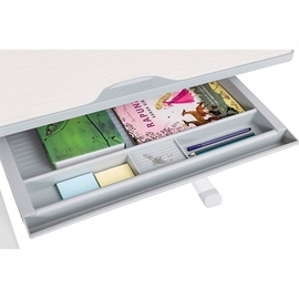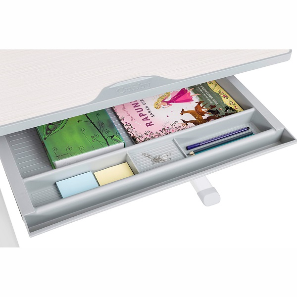 На парте можно разместить встраиваемую подставку для книг и встраиваемый LED светильник. Также есть место под стакан и пенал для письменных принадлежностей - все будет на своем месте!